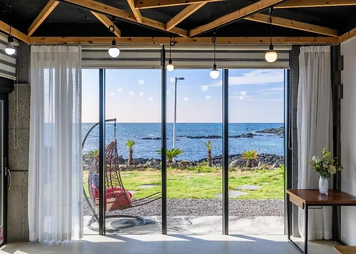 The 2-bedroom Beach Sunset Jeju villa offers proximity to nearby tourist spots, such as Samil Movement Monument, situated about a 20-minute walk away.